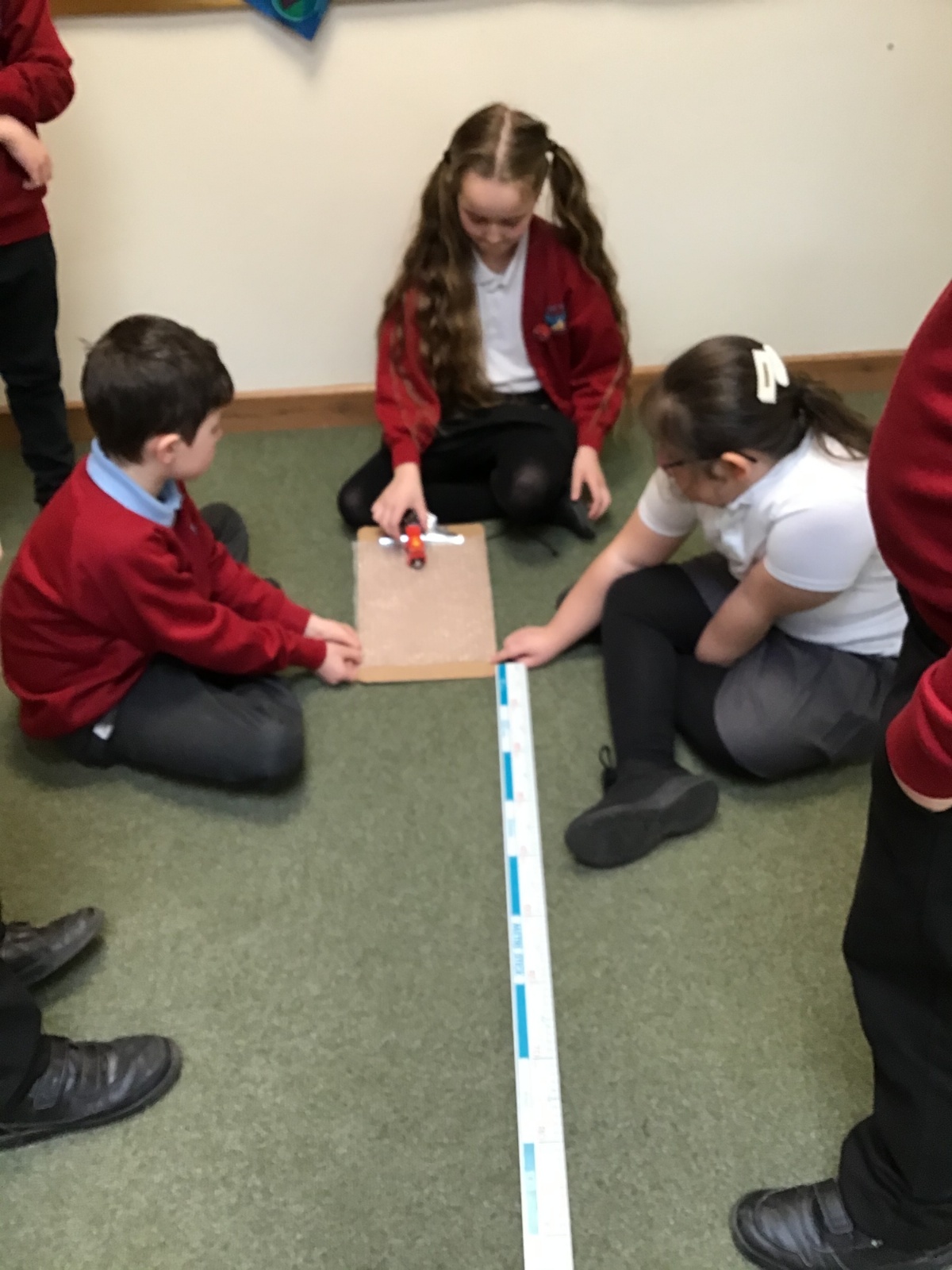 For science in Miss Moore's class today the children began their investigative work about forces. Focusing today on friction and how it can affect the movement of objects. The children worked collaboratively in groups to test different surfaces such as bubble wrap and wallpaper to see how far a toy car could travel linked to their knowledge of friction.
