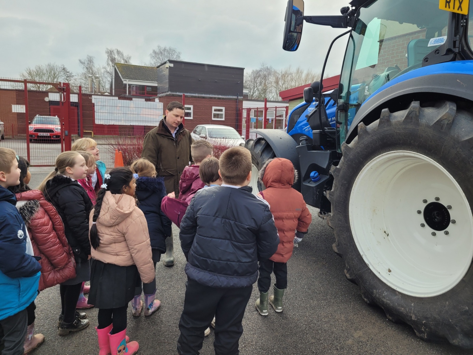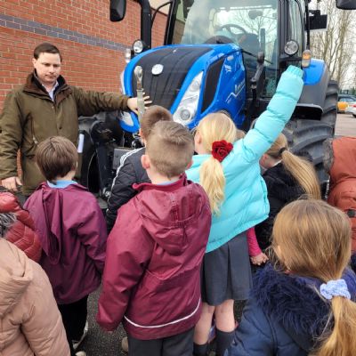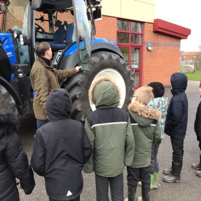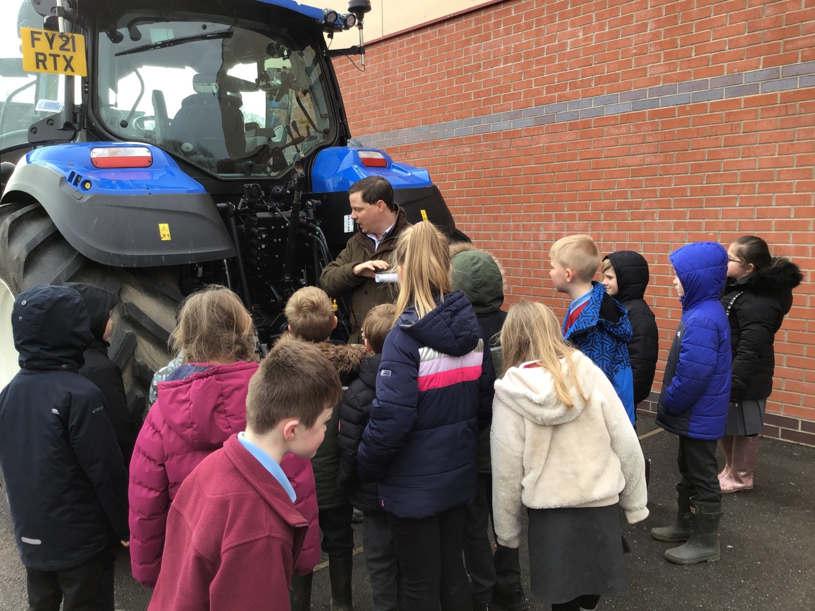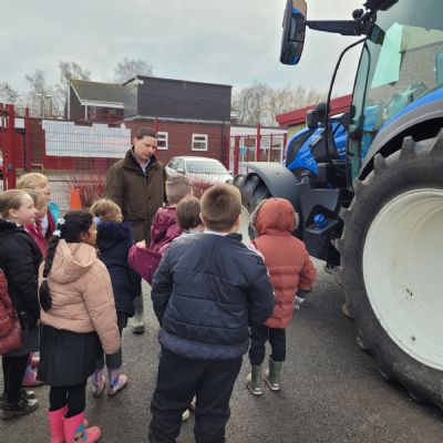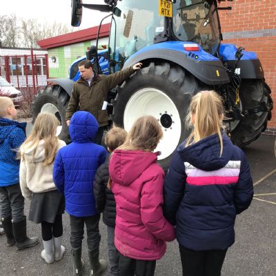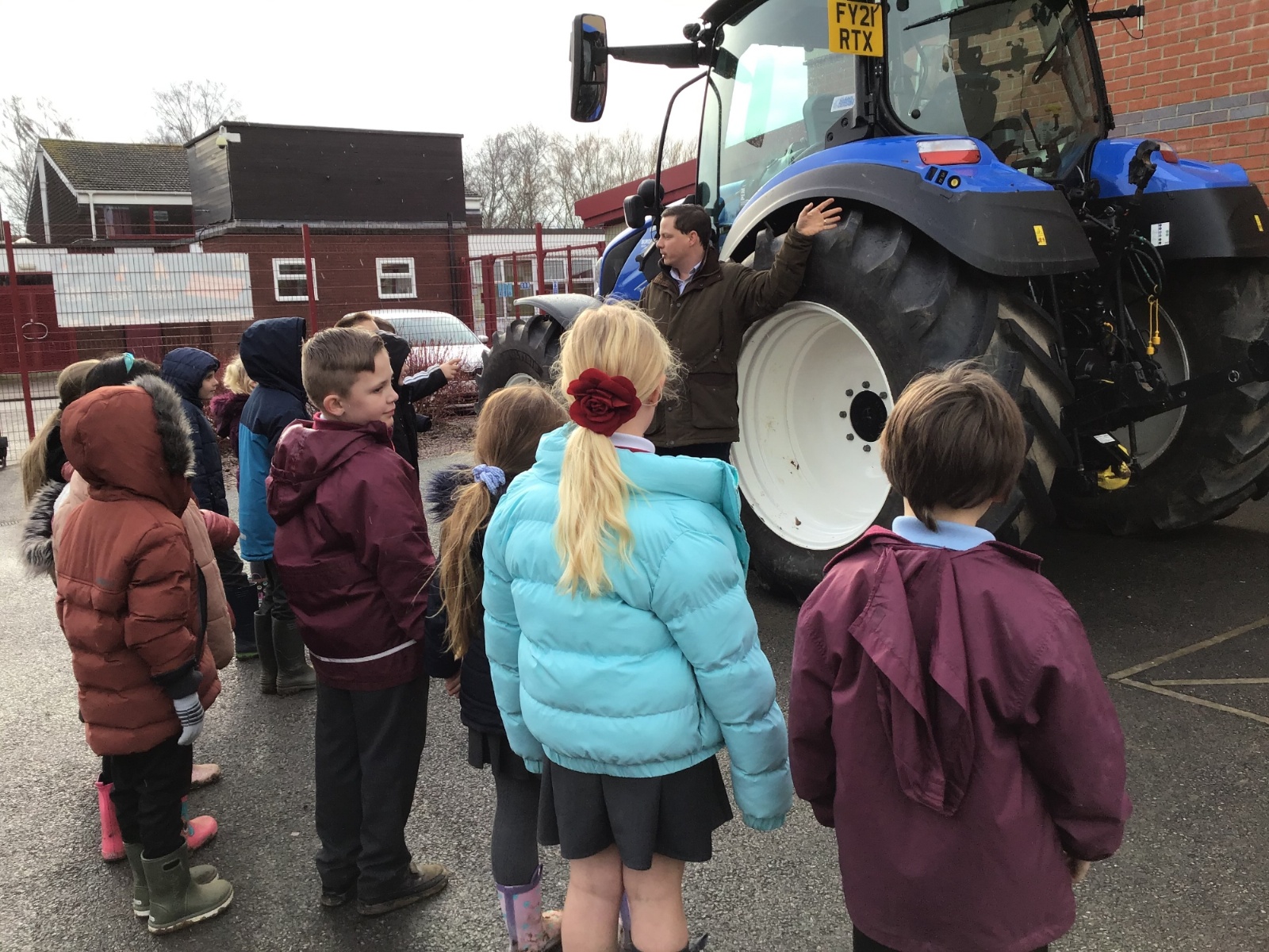Today in Miss Moore's class the children were treated to a visit from Mr and Mrs Gadd. It was fascinating to learn about what happens on a local arable farm. The children enjoyed getting to sit in the tractor, were amazed by how big the wheels were and asked lots of questions.