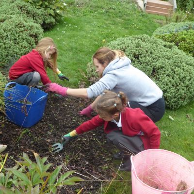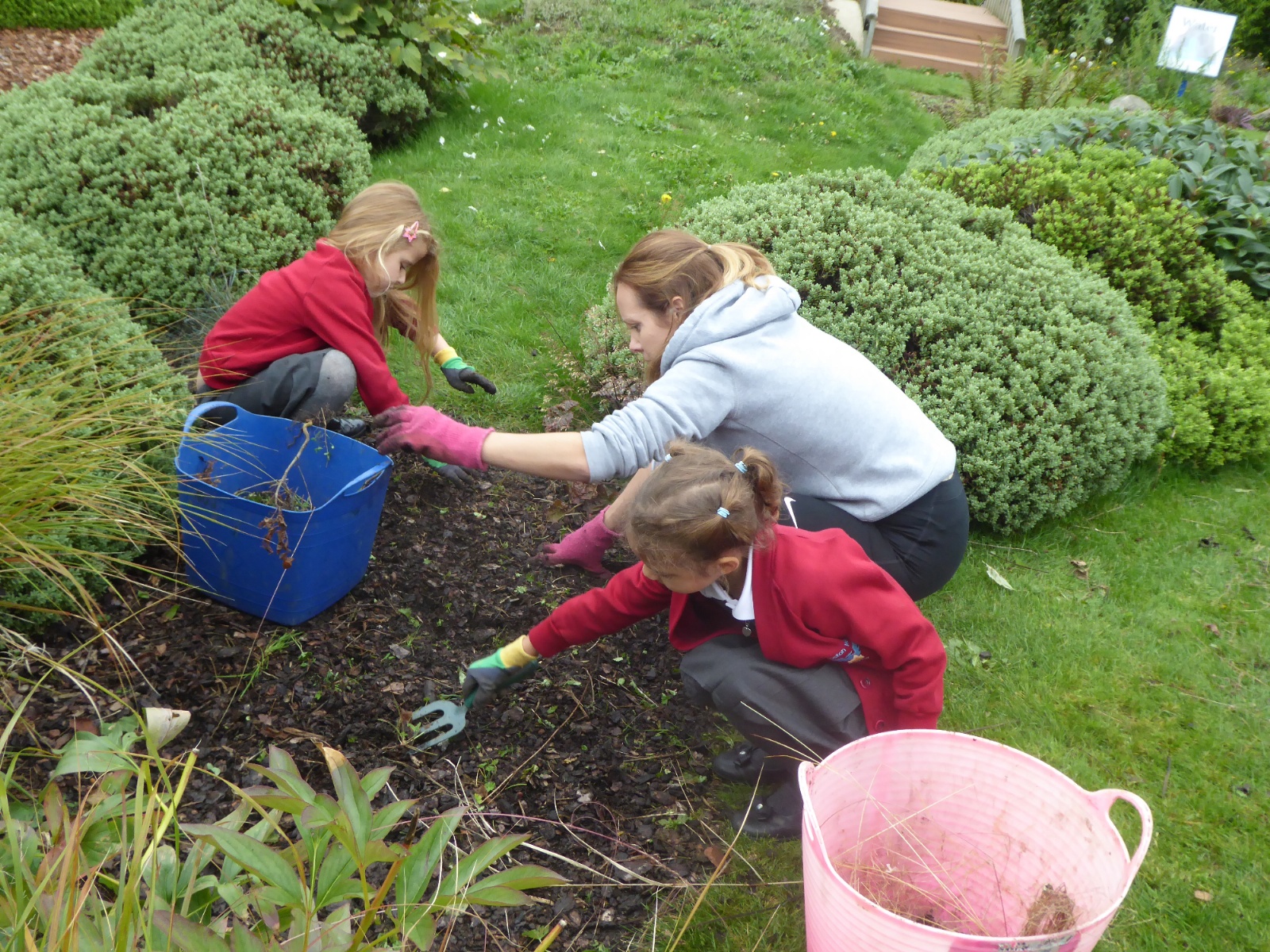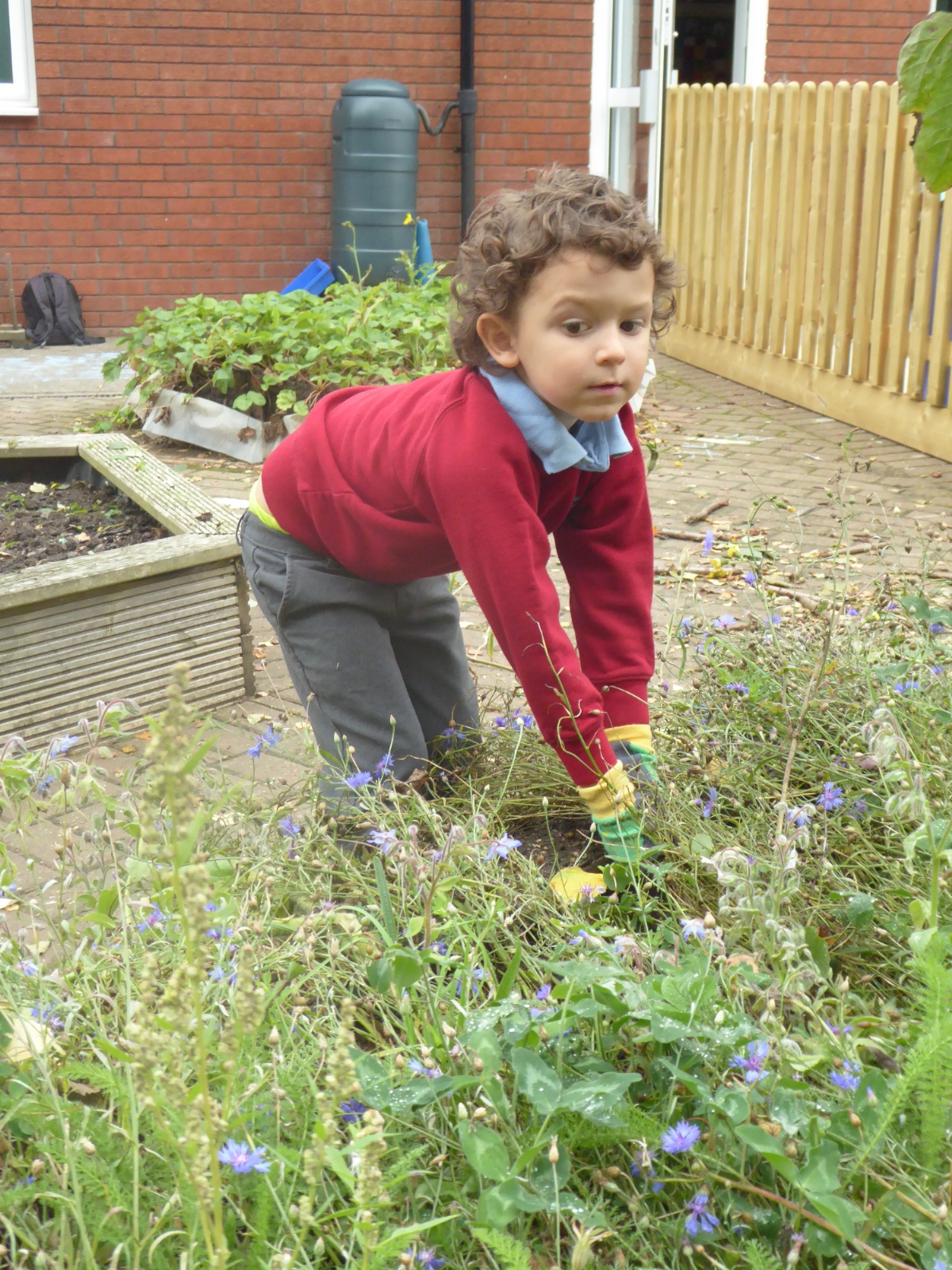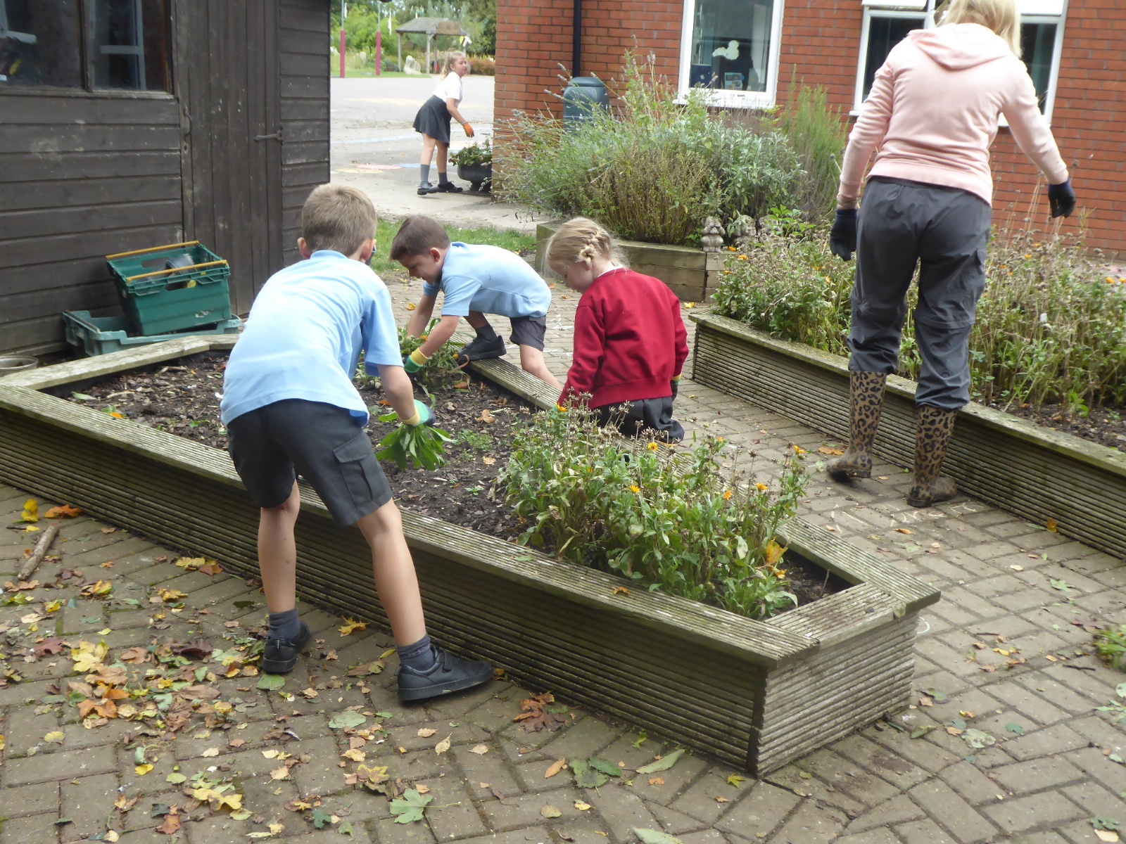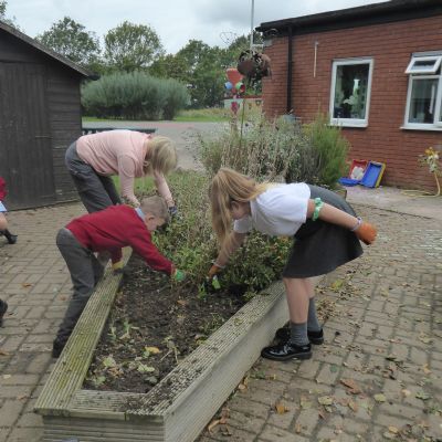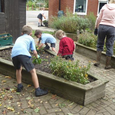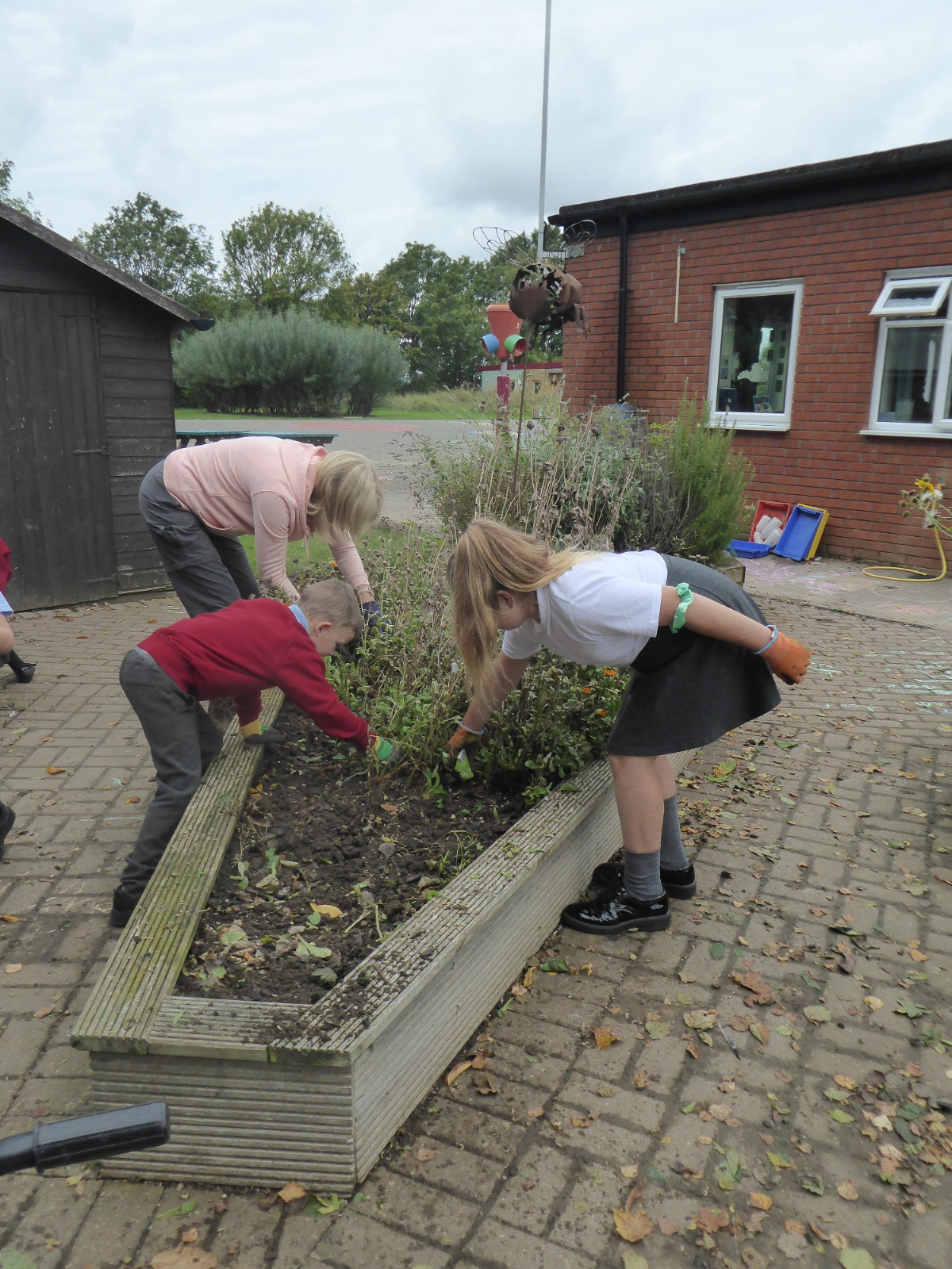 Today, the Y1 and Y5 gardeners worked together to weed the KS1 planters.