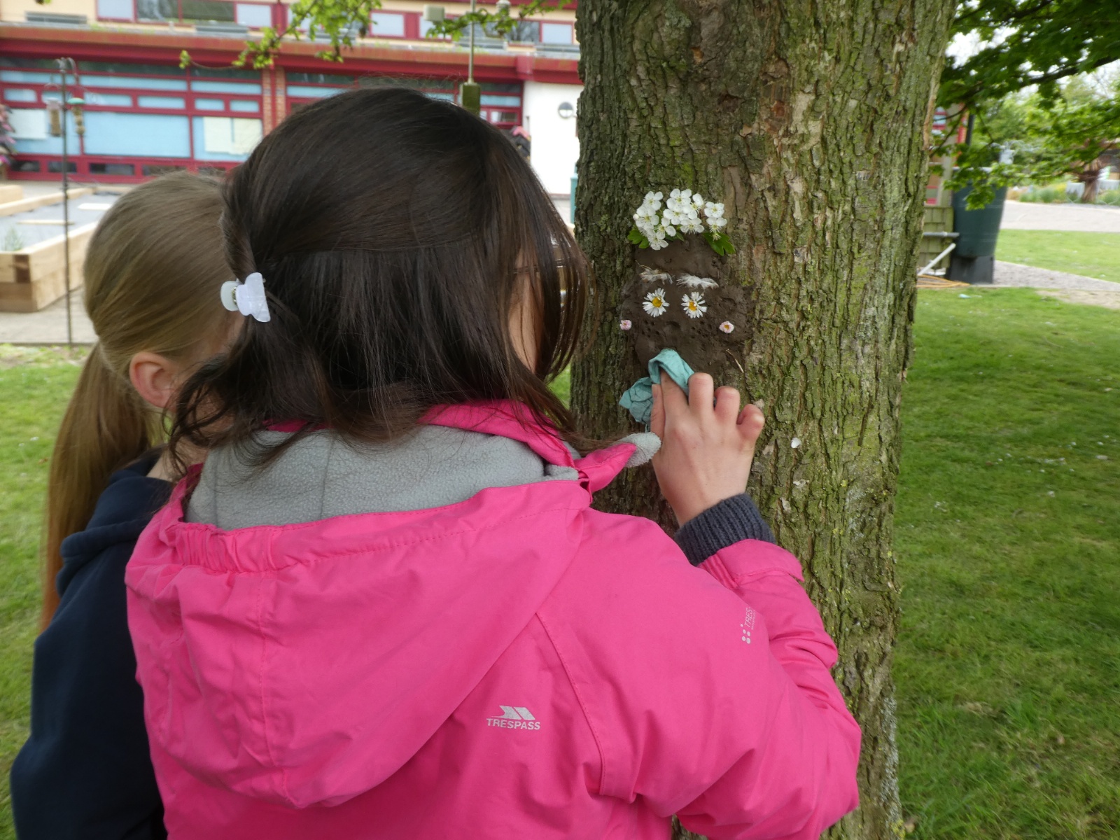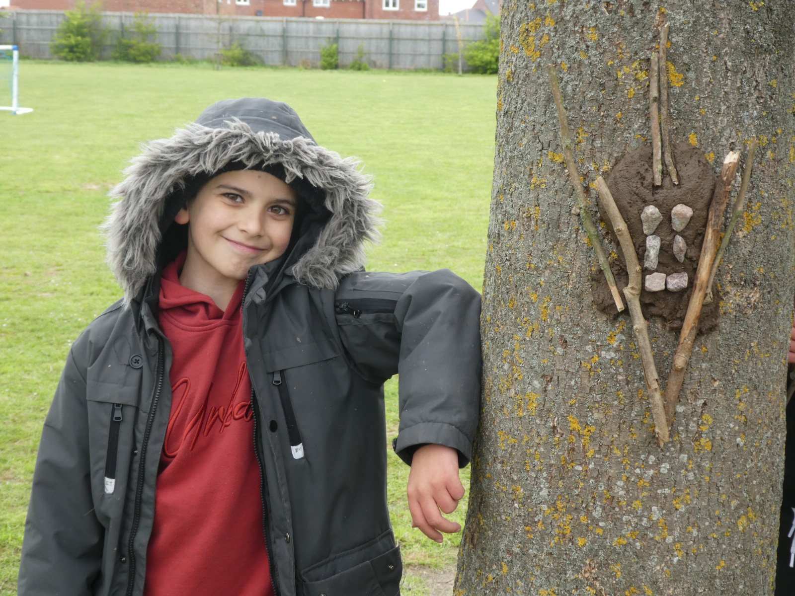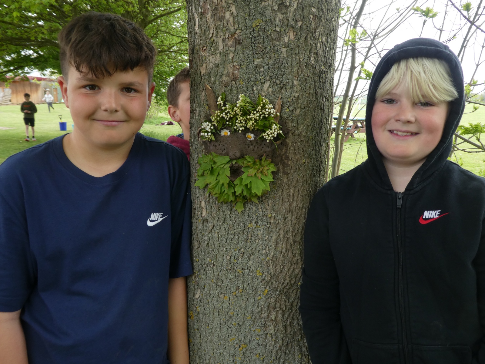 Today, a group of children from Mr Wilson and Mr Scrupps classes made tree guardians, using mud and natural resources. Legend tells us that tree guardians are responsible for a successful harvest and represent new life. It is believed that they make sure the seasons come and go and ensure plants and animals are all safe and healthy. In addition, some children planted potatoes and prepared the soil, ready for sewing seeds, later in the week.