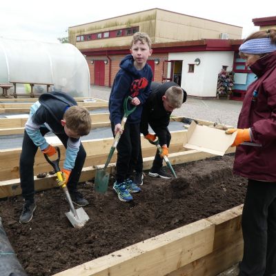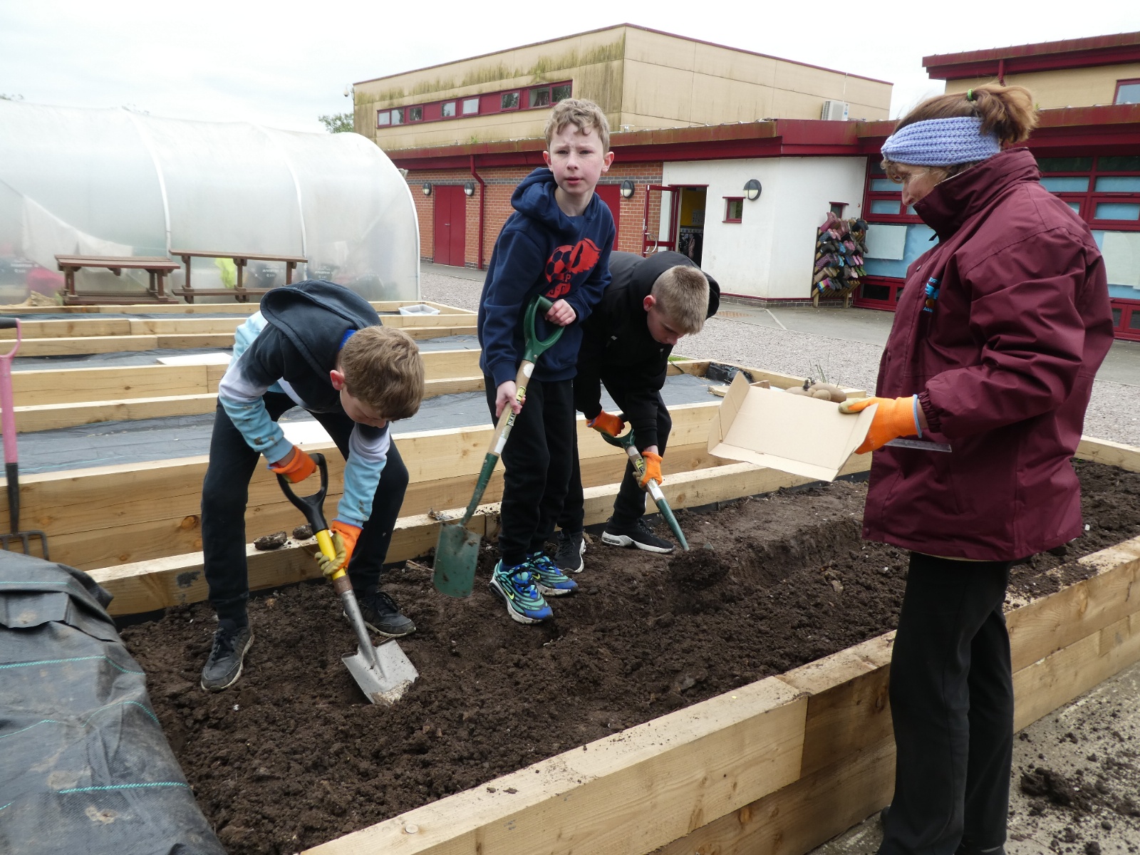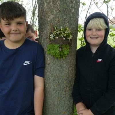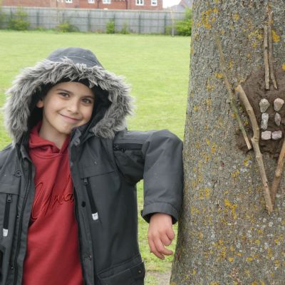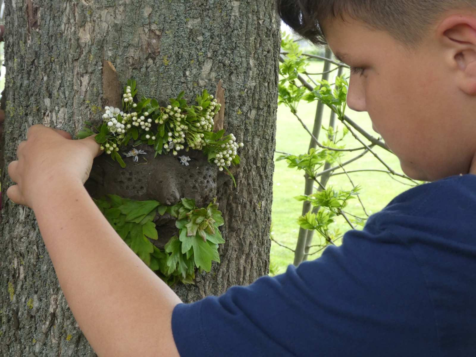 Today, a group of children from Mr Wilson and Mr Scrupps classes made tree guardians, using mud and natural resources. Legend tells us that tree guardians are responsible for a successful harvest and represent new life. It is believed that they make sure the seasons come and go and ensure plants and animals are all safe and healthy. In addition, some children planted potatoes and prepared the soil, ready for sewing seeds, later in the week.