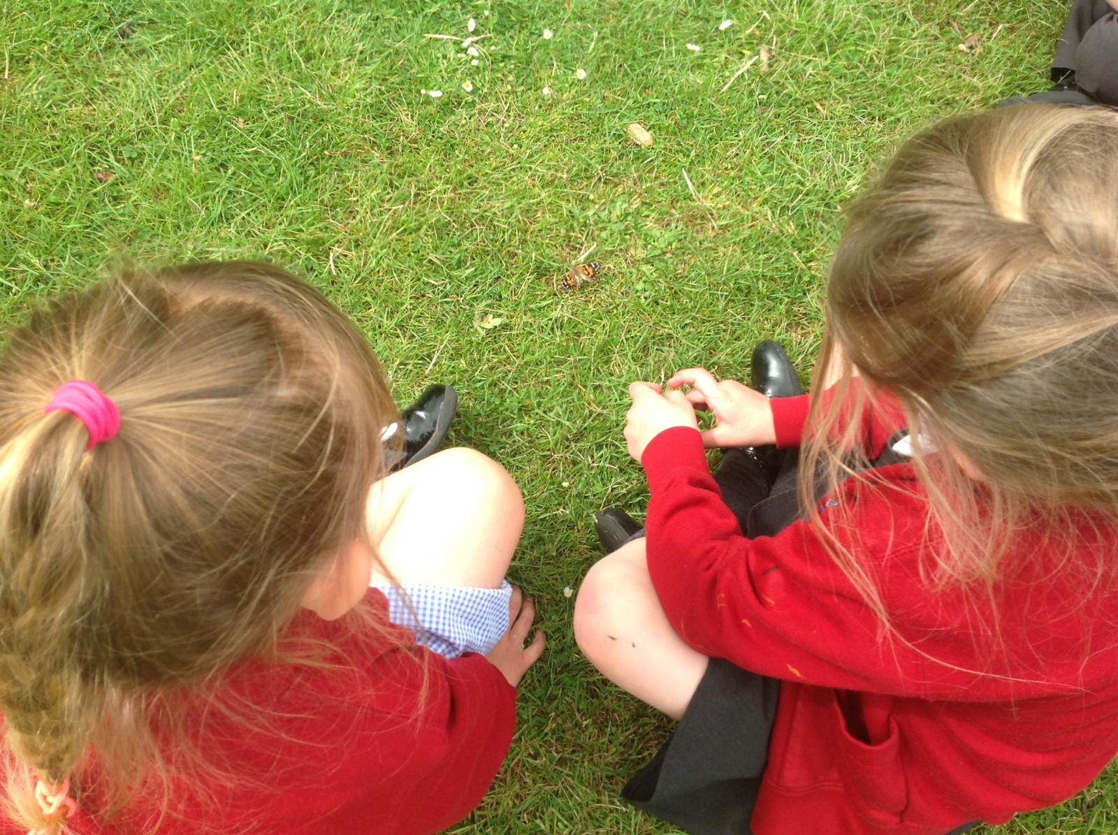 This afternoon the children were very excited to finally release the class butterflies into the outdoors! They really enjoyed watching where they flew off to, with two of them instantly finding some flowers in our meadow.