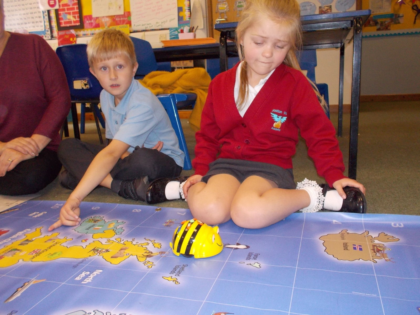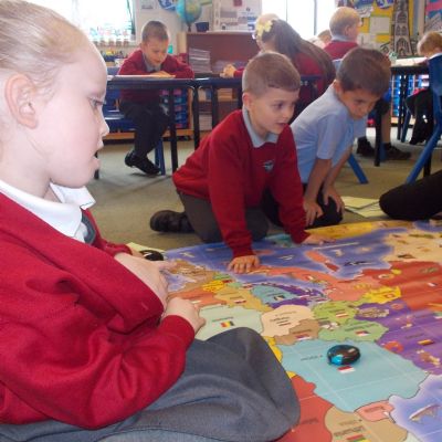 We have been using coordinates to locate the starting position of a Bee-Bot on our maps of the UK and Europe. We have then created our own directions to move from one grid reference to another and programmed the Bee-Bot to successfully move from the starting point to the desired final destination.