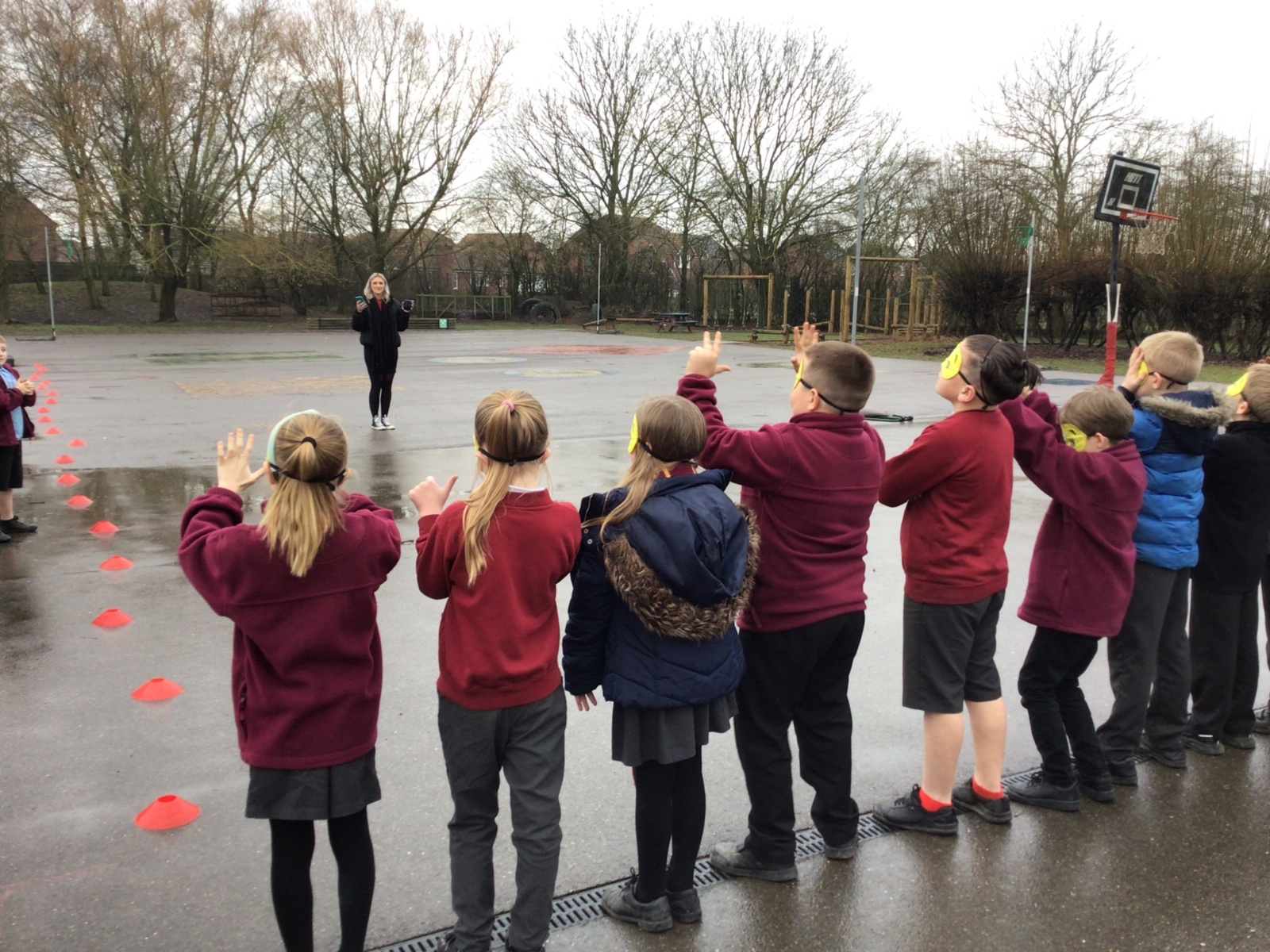 As part of this experiment, Miss Bushell (the sound source) moved closer or further away from us on a start line, and we had to guess how many metres away she was.